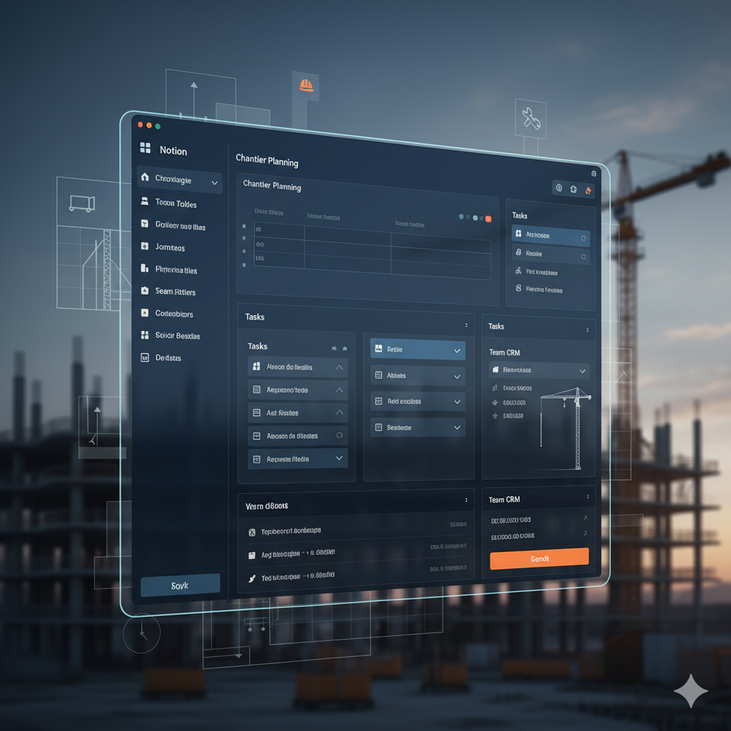 – Notion / Airtable  → Suivi chantiers + CRM